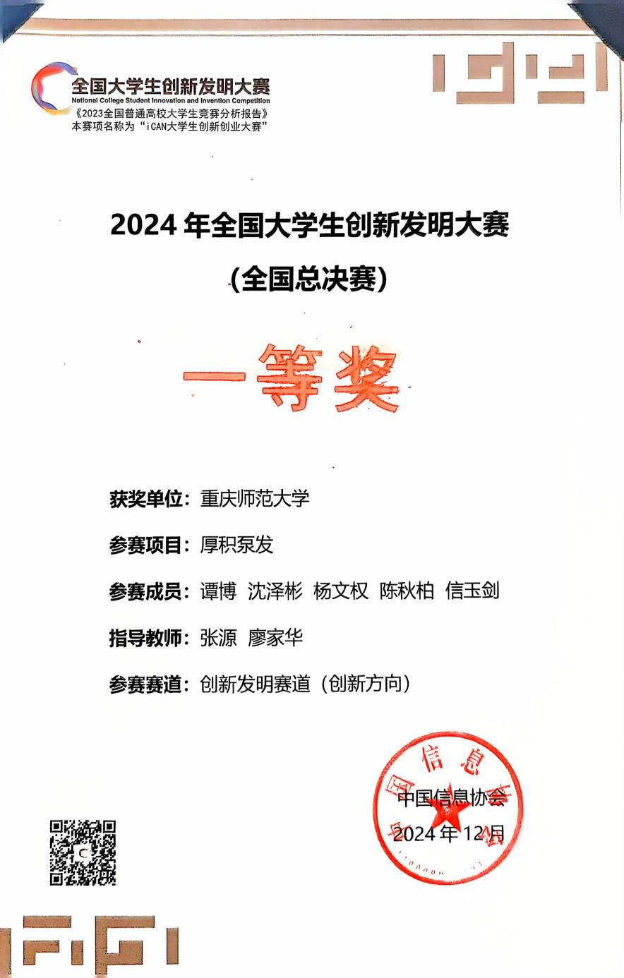 12月7日,由中国信息协会主办的2024全国大学生创新发明大赛全国总决赛在南京航空航天大学落下帷幕。asmr18 学生谭博负责的项目《厚积泵发》斩获创新发明赛道(创新方向)全国一等奖。