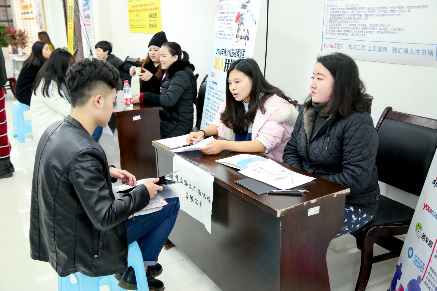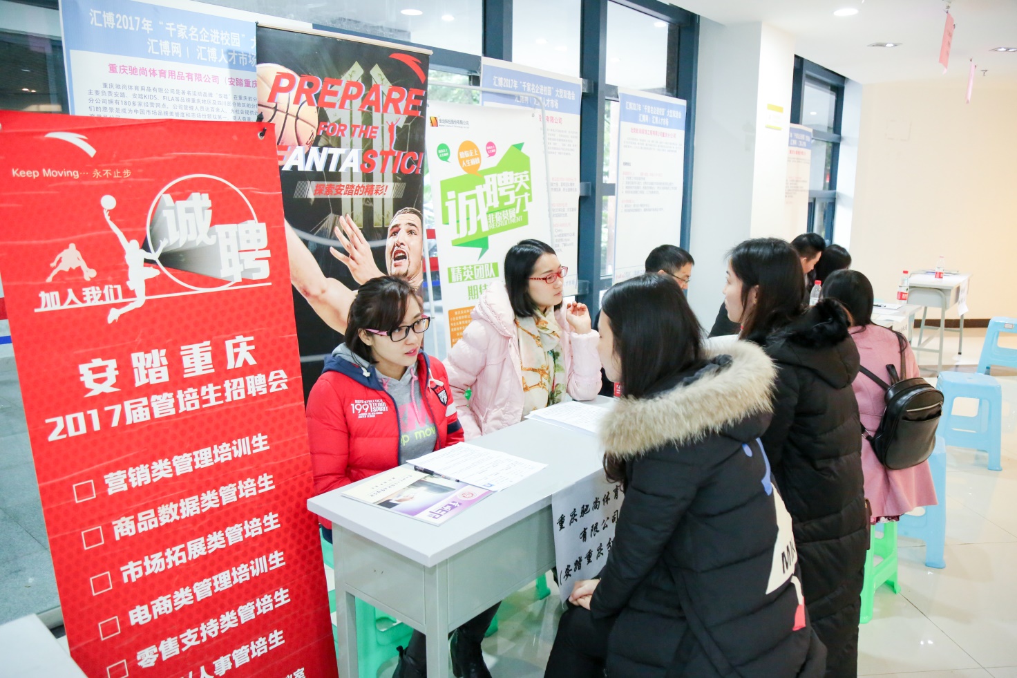 201612月17日,asmr18 管理营销类”双向选择招聘会于asmr18 校友会堂一站式服务中心大厅隆重举办。本次招聘会汇集了蓝月亮(中国)有限公司、太平洋人寿保险重庆分公司、中国平安保险股份有限公司重庆分公司、深圳市惠今惠信金融服务有限公司、中国人寿保险股份有限公司重庆分公司等70余家用人单位,为asmr18 学子提供了1000余个就职岗位。asmr18 2013级、2014级学生共600余名前来参加。