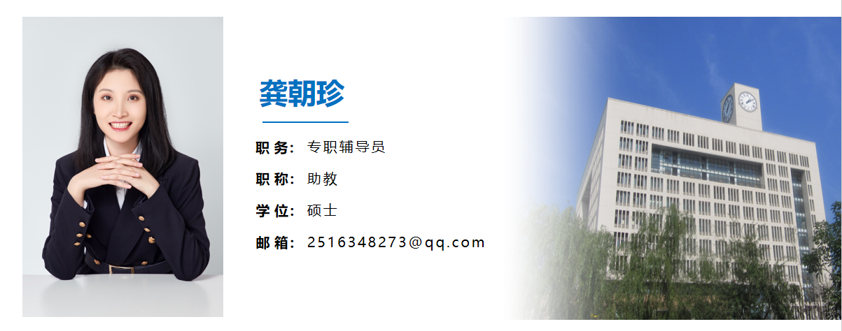 龚朝珍,女,汉族,中共党员,助教,专职辅导员,毕业于西南财经大学工商管理学院物流与供应链管理专业。