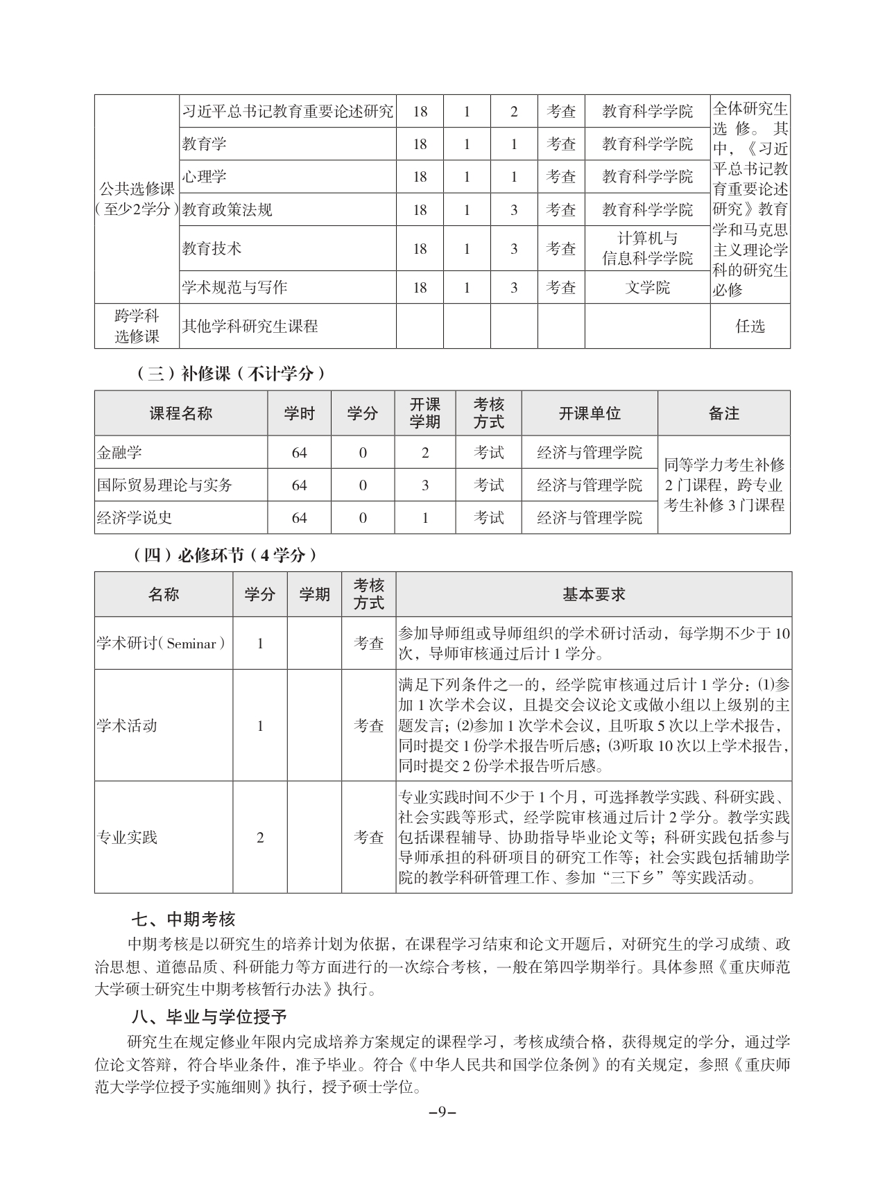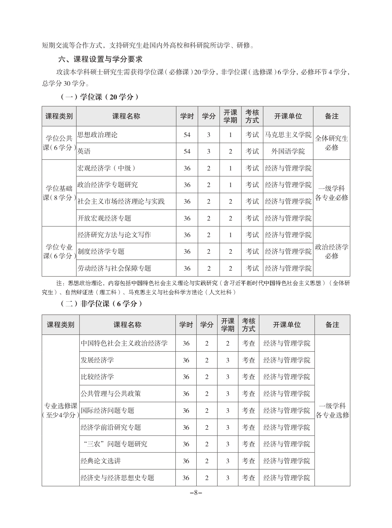 理论经济学一级学科(政治经济学二级学科)硕士研究生培养方案
