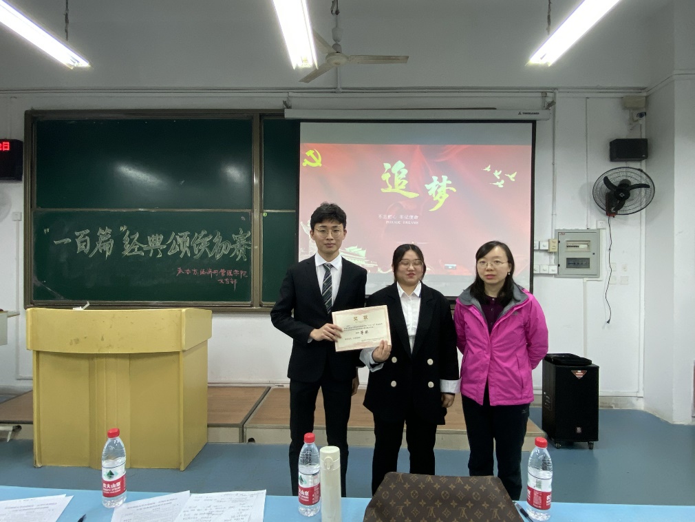 经过激烈角逐,最终 “星火队”凭着精美的PPT、激动人心的配乐以及队员们充满丰富情感的朗诵荣获一等奖,“社会主义接班人”、“青春有我”团队获二等奖,“青春颂党队”、“红心向党队”获三等奖,“四大金刚”、“九歌队”、“传颂经典队”团队获优秀奖。8个团队的优秀表现均得到了任缙老师等各位评委的一致好评,除此之外,任缙老师也希望今后的朗诵作品能突出学院的特色,也鼓励队员们通过不同的队形走位等方式,给朗诵打造额外的亮点。