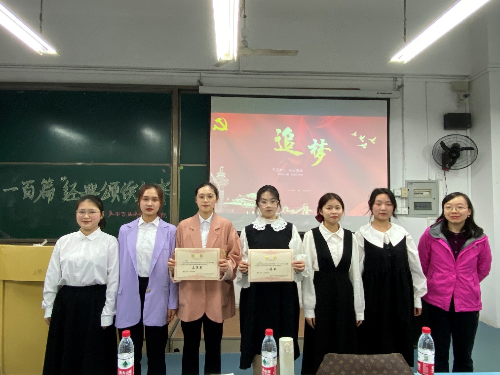“十个一百”喜迎建党一百周年系列活动之经典诵读比赛初赛于弘德楼15101教室成功举行。演讲与口才兴趣小组指导教师任缙,小组组长江清清,学生会文艺部负责人瞿苏艺担任此次活动评委。
