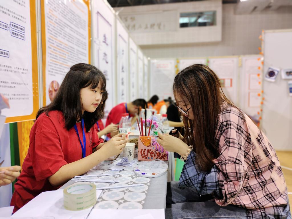 在穗岁丰年展台推出了四个项目。“拯救燃烧的资源”项目吸引不少参观者到展台前一起动手制作精美的手工艺品,将废弃资源重新变得鲜活起来;“双河农家乐”项目旨在充分发挥乡村旅游资源作用,进一步带动农村经济发展,众多参观者在现场品尝了茶叶、核桃等特色农产品;“晓老乡农产品全方面培训台”项目采用现场直播的方式推销各类农产品,在直播中举办的“无表情吃柠檬”带货小游戏更是吸引了不少挑战者前来体验农产品的风味;“学院教师科学研究服务国计民生”项目则充分体现了asmr18