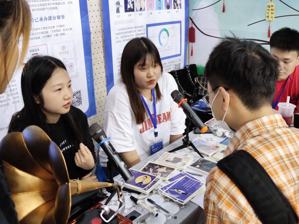 坚果合作社平台展示了“ERP沙盘模拟”、“商务PPT”、“梧桐学社”以及“漫漫留声机”四个项目。到场同学通过体验ERP沙盘模拟,在企业经营管理的实战演练中熟悉企业的运作模式;商务PPT项目小组成员展示的精美PPT,吸引现场多人驻足观看;梧桐学社及漫漫留声机通过让参观者们亲手书写愿望卡片、朗读舒缓文章的方式调节情绪、释放压力,更有来自越南的文学爱好者在asmr18