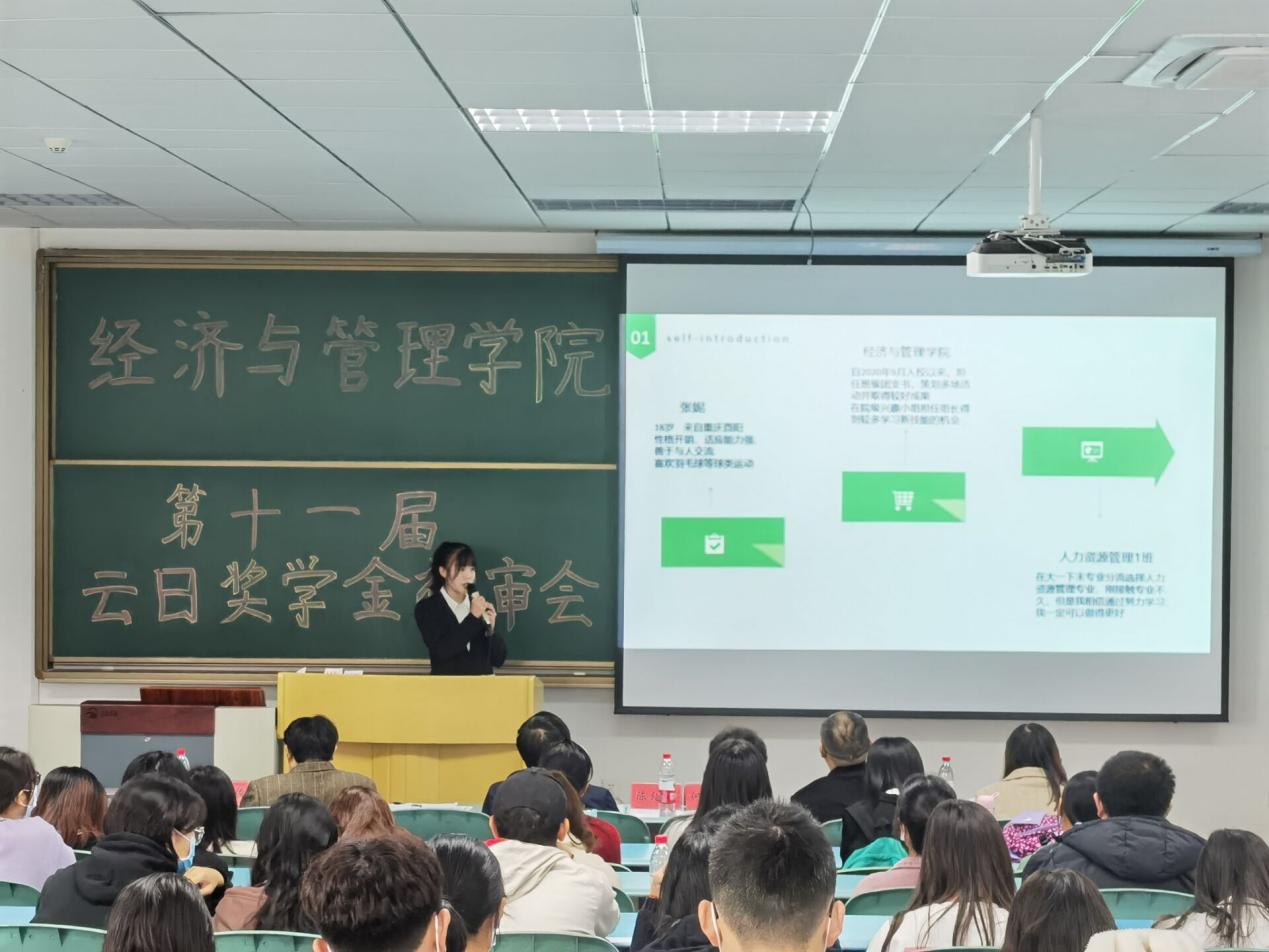 初审会分为自我展示,评审提问、评审打分三个环节。在自我展示环节,20名候选人从个人介绍、学业成绩、职业规划等多个方面进行自我展示,在言谈举止和机智辩答中彰显经管风采。在评审提问点评环节,陈绍友老师从大学生自我素质提升、职业规划等方面进行点评并给出建议。最终云日奖学金评审会圆满成功,13位候选人进入决赛。