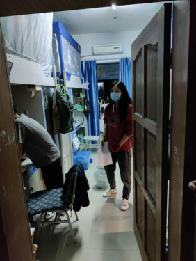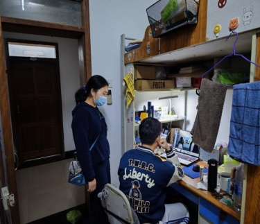 领导及辅导员老师走入寝室,关照学生,照顾到疫情之下学生的负面情绪,并确保同学们的基本物资需求得到保障。