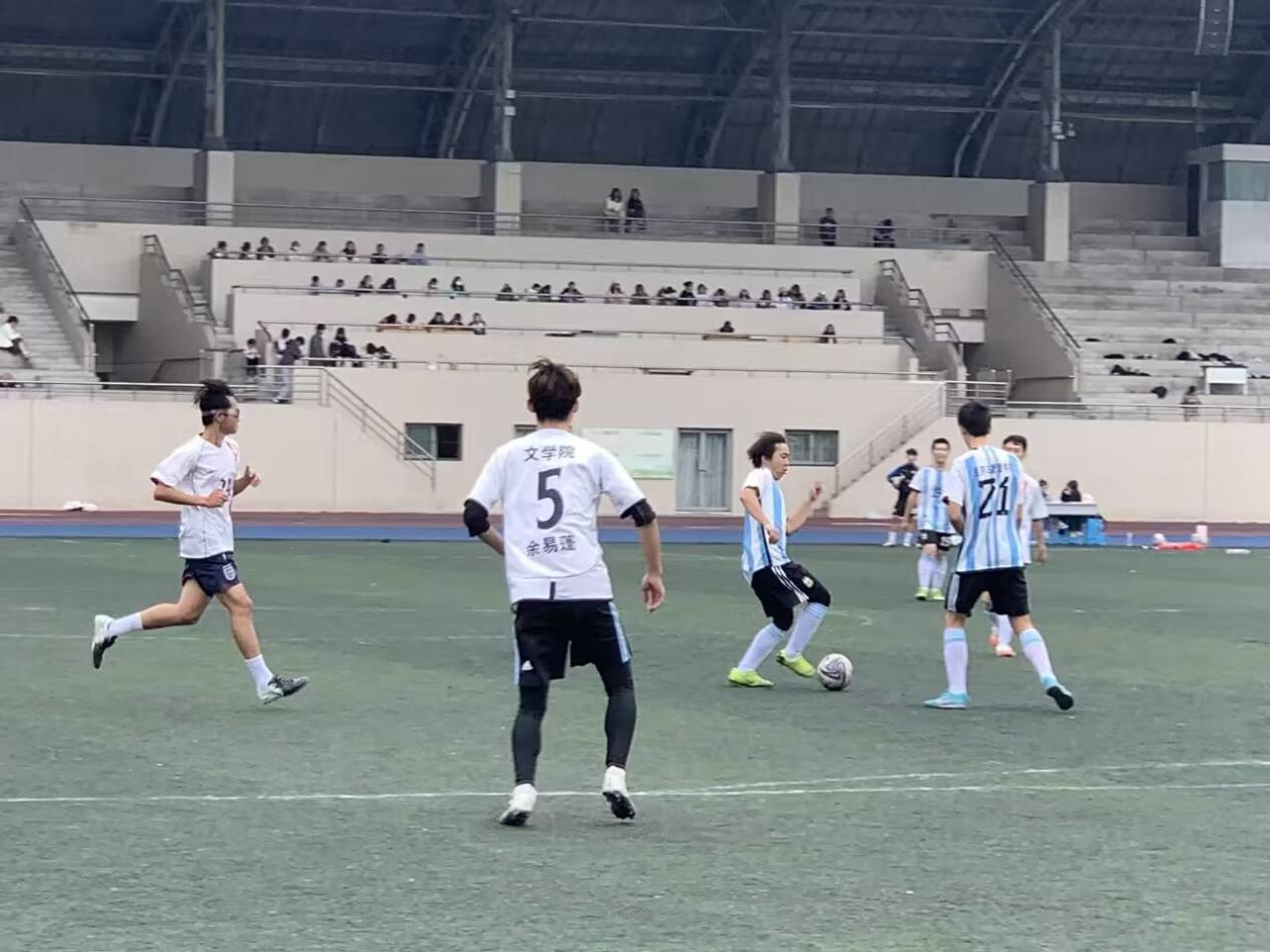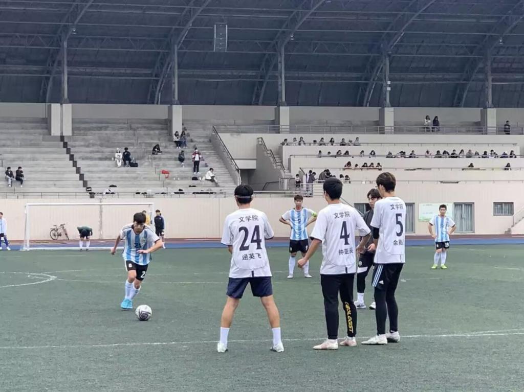足球队踏上第一运动场的足球赛场,与文学院的足球队伍将展开激烈角逐。