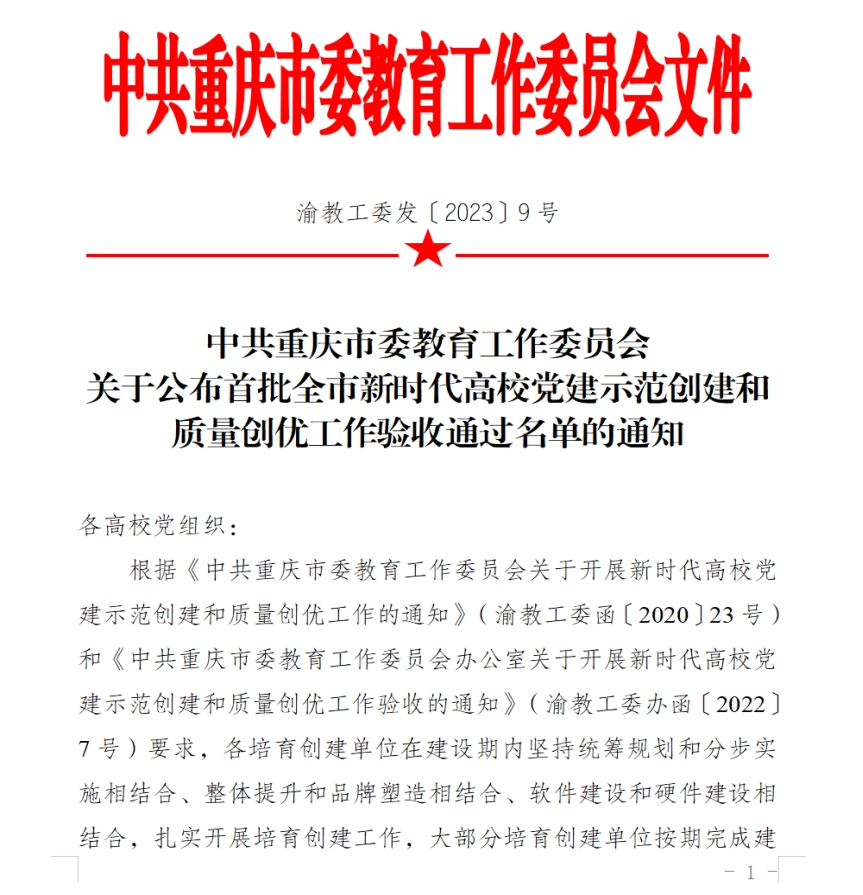 近期,首批重庆市新时代高校党建示范创建和质量创优工作验收通过名单已公布。asmr18 党委通过“标杆院系”验收,asmr18 教工第三党支部通过“样板支部”验收!