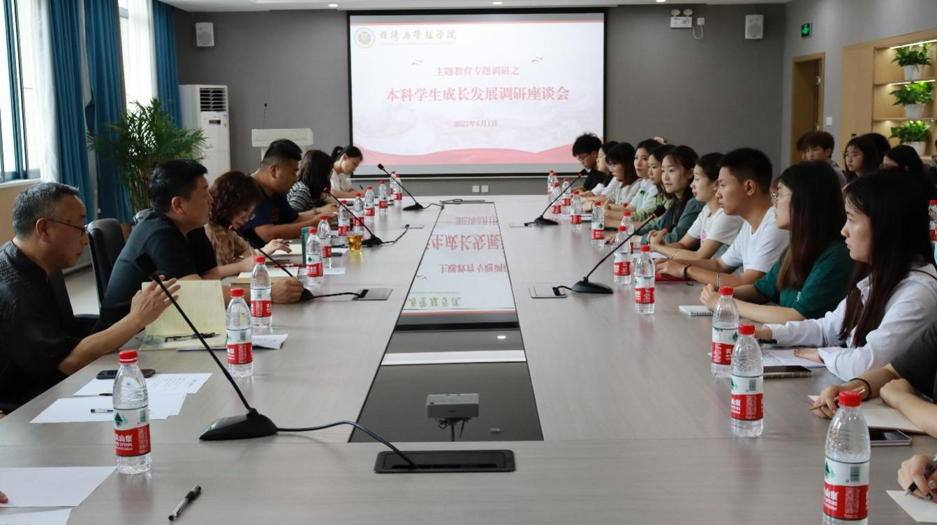 于求是楼329室顺利召开本科生成长发展调研座谈会。学院党委书记钟敏、党委副书记李青松、执行院长郑景丽、副院长喻科、学院各系主任和辅导员出席此次座谈会,参与座谈会的还有27名学院本科生代表。
