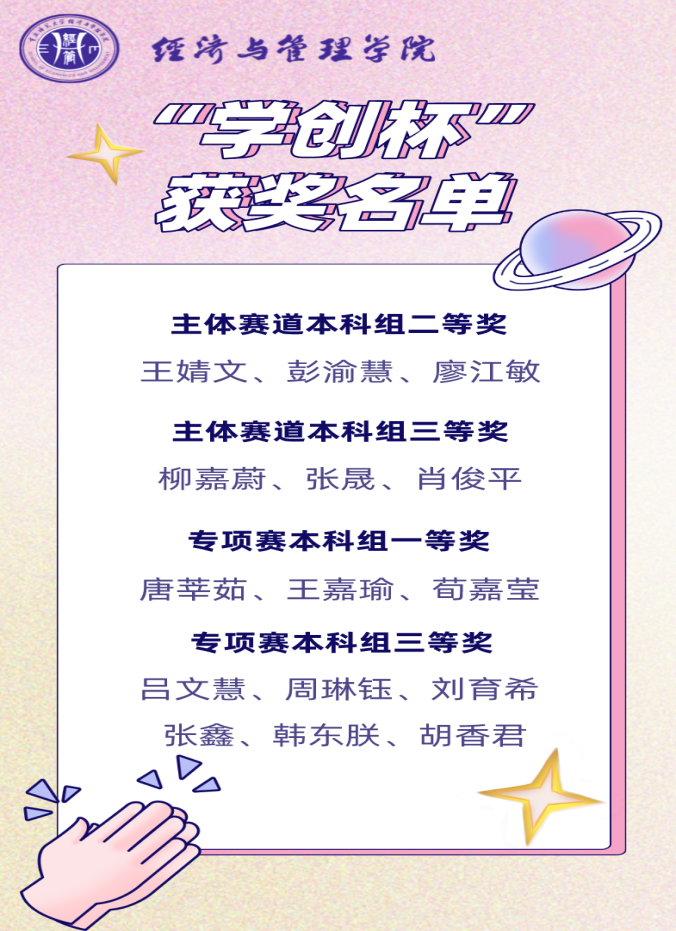 师生在此次比赛中喜获佳绩——主体赛本科组二等奖1项、三等奖1项,专项赛本科组一等奖1项、三等奖2项,充分展现了经管学子勇于开拓创新的竞技风采。